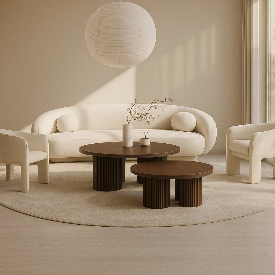 Salontafel Tresi – Organisch Japandi Design met Travertin Look & Walnoot Hout