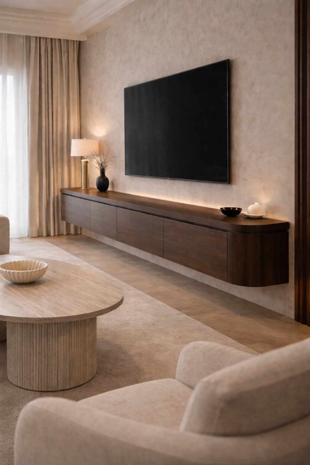 Dit tv-meubel is ontworpen voor liefhebbers van een strak interieur met warme accenten — perfect voor een Japandi, minimalistisch of hotel chique woonstijl.